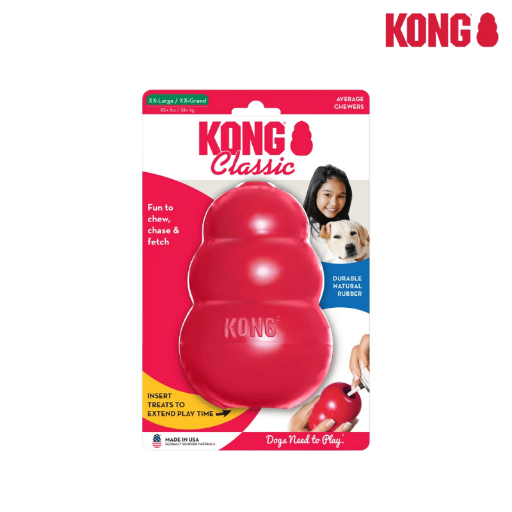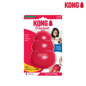 Le KONG Classic est le jouet pour chien par excellence qui, depuis plus de quarante ans, est devenu la référence incontournable pour les chiens du monde entier. La formule unique du caoutchouc 100% naturel du KONG Classic rouge est extrêmement durable et son rebond déconcertant est idéal pour les chiens qui aiment mastiquer tout en satisfaisant leur besoin inné de jouer. Il aide à satisfaire les besoins d’instinct naturel des chiens en leurs offrant un vrai défi. Vous voulez prolonger les séances de jeu ? Faites en sorte de farcir le jouet d’appétissantes croquettes pour chien et d’un soupçon de beurre de cacahuète. Augmenter le défi en ajoutant des KONG Snacks et de la pâte KONG Easy Treat par dessus.