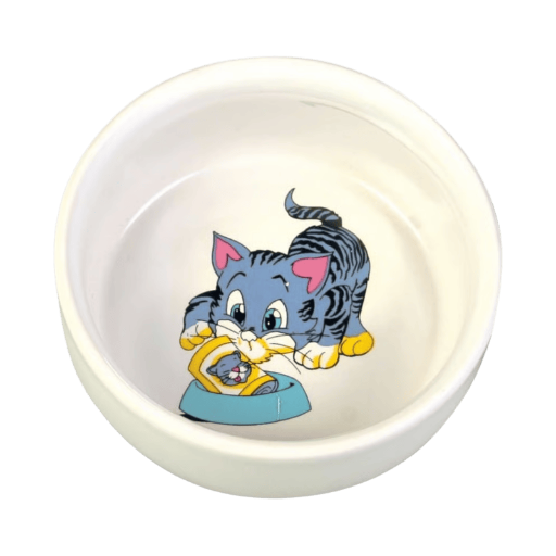 L’ecuelle avec dessin chat est en céramique. La gamelle convient pour les chats et chatons.